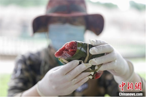 当日,北方森林动物园动物饲养高级工程师刘晓密早早到岗,和同事们一起为“动物家人们”包粽子、过端午。刘晓密告诉记者:“包粽子所用原材料都按动物们平时的营养需要严格配置,中间还镶嵌了它们平时爱吃的水果点缀。”