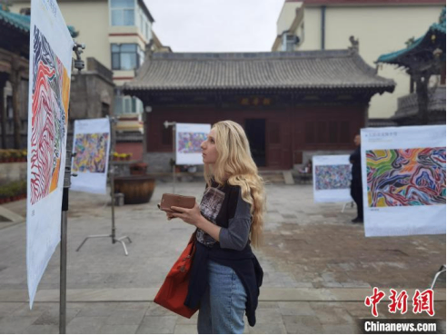 来自法国的Florie(中文名:何芳丽)是第四次来到中国,这是她此行的第12天。刚从西安来到太原的Florie听闻文殊寺有现代艺术展,专程前来。“听说这个古建筑有400多年的历史,而这些抽象艺术绘画也很有现代感,这种文化的交流特别有新意。”Florie说。
