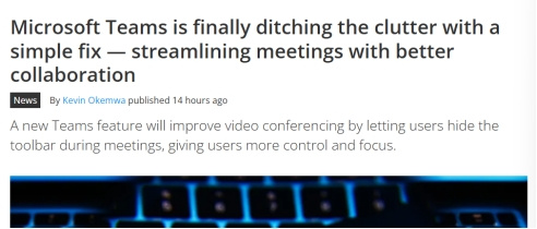 2月7日消息,据 Windows Central报道,微软Teams 的一项新功能将允许用户在会议期间隐藏工具栏,从而改善视频会议体验,使用户能够更好地控制会议内容并集中注意力。